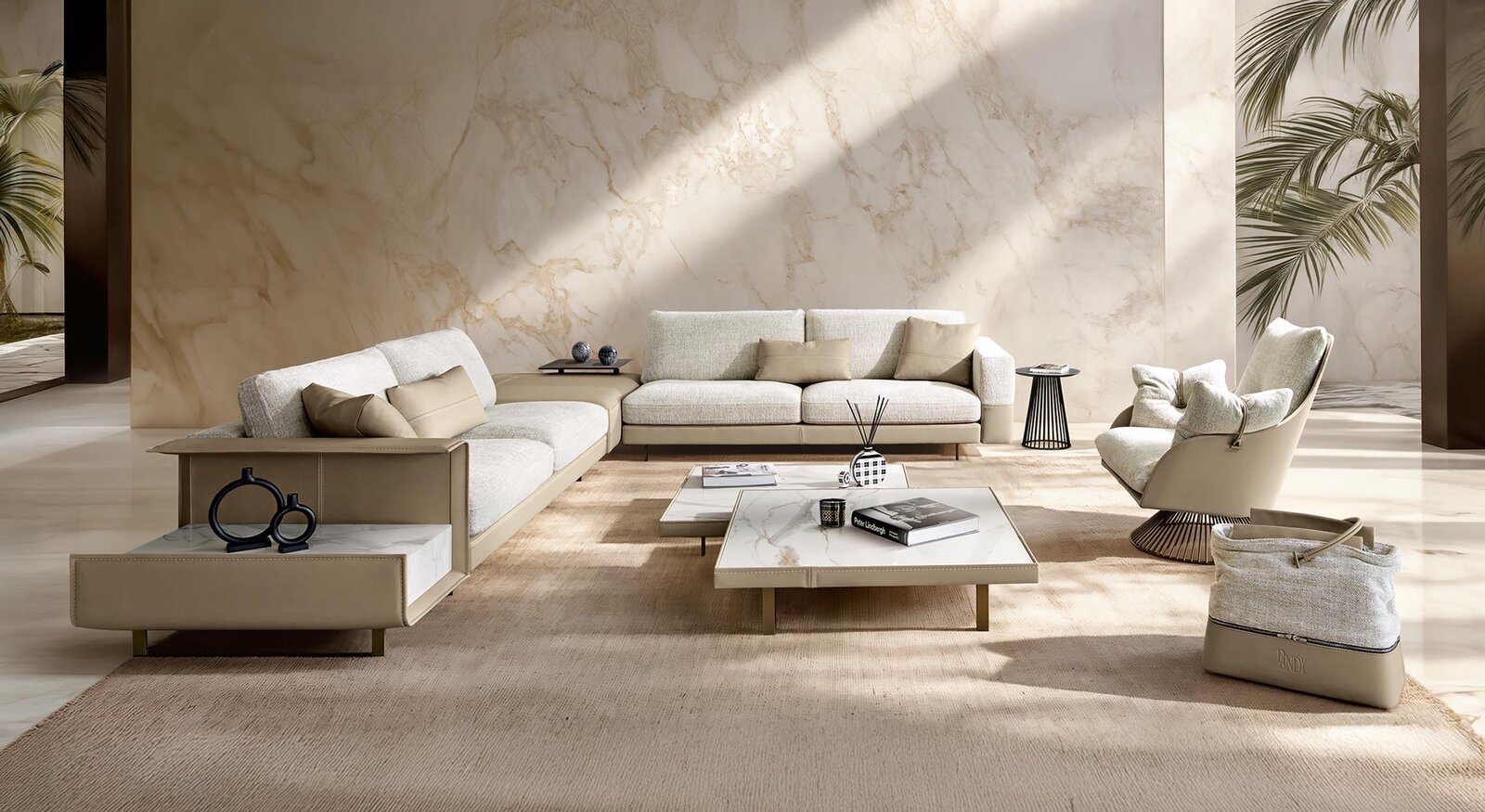 - Chất liệu bọc phần trên, đáy và gối: Da Cat.E Piuma, màu 537 Tortora